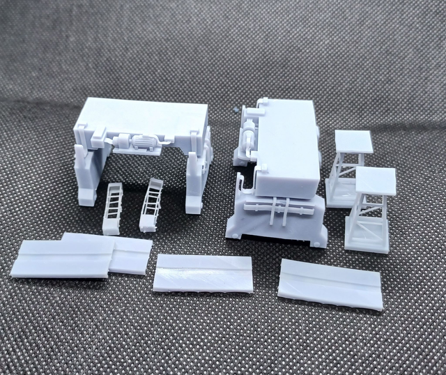 3D resin printed pair of machinery with accessories, supplied unpainted (wagon for reference only)