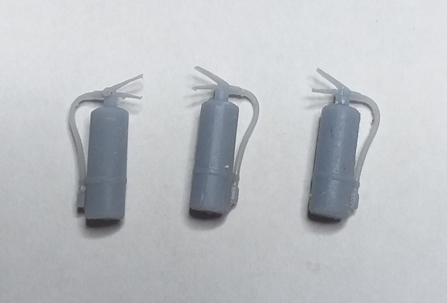 3D resin unpainted fire extinguisher, in 4mm and 7mm scales.
